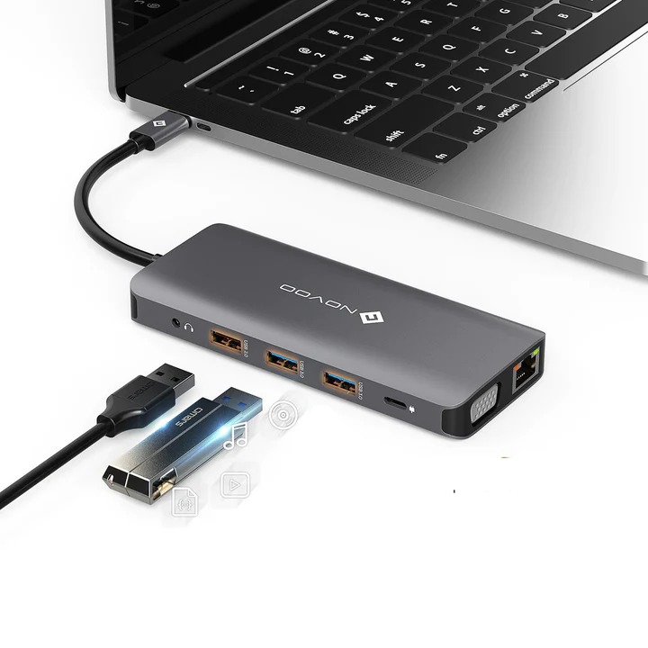 Wide Use & Certified Safe: Novoo 12 ports USB-C compatible with the latest laptops, tablets, and smartphones with USB-C port: 2016/2017/ 2018 MacBook Pro, MacBook, Huawei MateBook, Surface Book, Samsung S8/S9, Huawei Mate10/ 20. And other type-C laptops, most phones, tablets. The USB-C docking station has FCC, CE and RoHS certified back up with a 24-month 100% satisfaction guarantee.