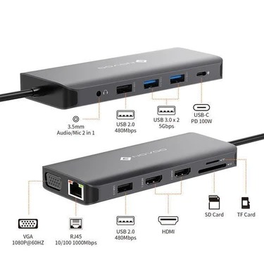 SD&TF Card Reader & Audio/Mic 2-In-1 Jack: NOVOO USB-C adapter built-in SD and TF slot allows for easy access to files from universal SD and micro SD memory cards with a super speed of up to 5gpbs. Generic 3.5mm Audio/Mic 2-in-1 jack can also meet your daily convenient need of the audio /video playback and voice output at the same time.