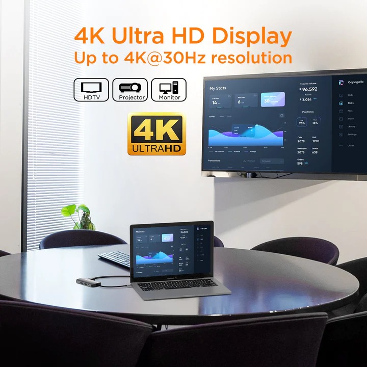 Vivid Display 4K USB C to HDMI Multiport Adapter: NOVOO USB C Hub HDMI enables mirror or extends your laptop to an HDTV, monitor or projector up to 4K UHD (3840x2160@30Hz) resolution. Perfect to project your PPT, enjoy a 3D film in a larger monitor or add a second screen to extend your laptop.