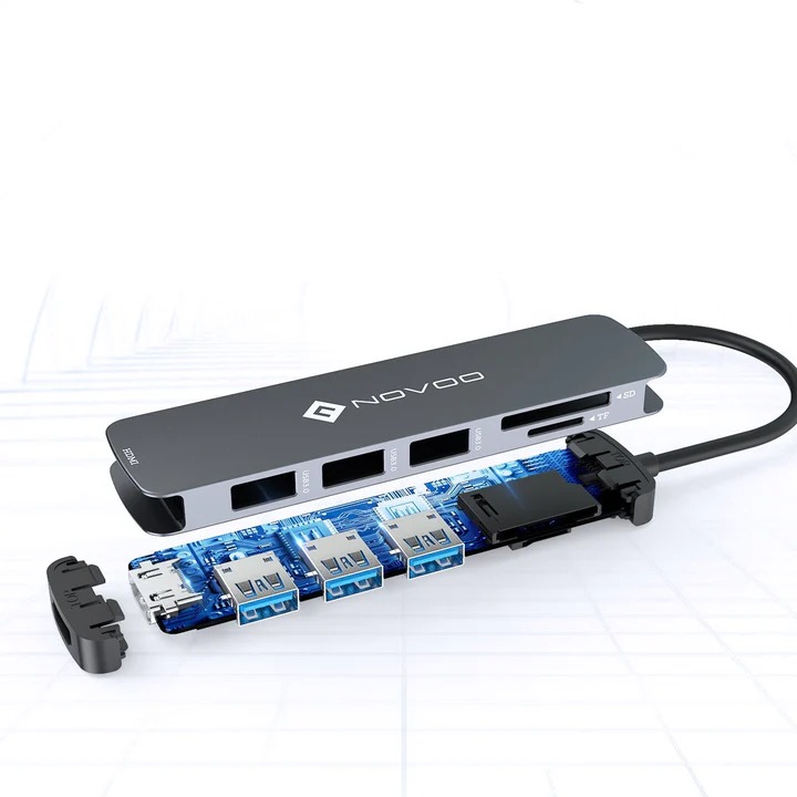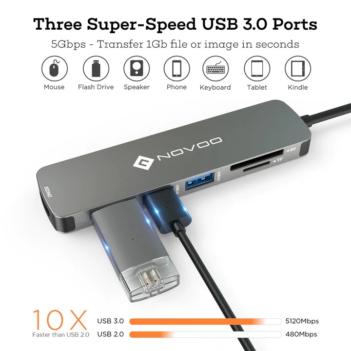 Certified Safe: CE, FCC, and RoHS certified. NOVOO Multiport Hub has stable output, temperature protection, anti-over current, and an anti-short circuit. This mobile working station r is also backed by a 12-month 100% satisfaction guarantee.