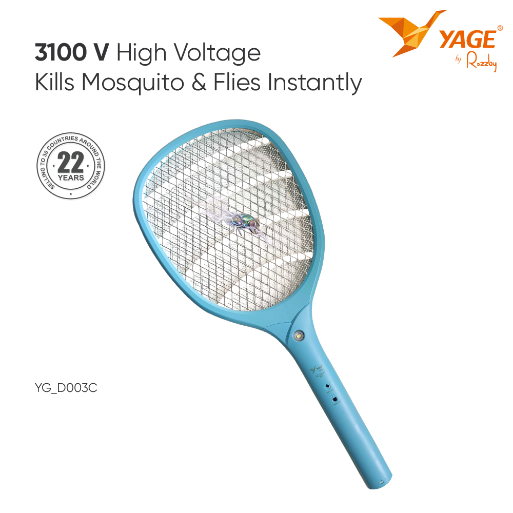 YG-D003C mosquito Swatter makes it easier to catch bugs with its unique tennis racket design and electrical surface. Catch mosquitos mid-flight with its large surface and handy LED light that’s deal for use at night.