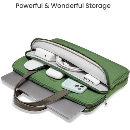 Powerful & Wonderful Storage: The laptop bag has a super functional organization system. It features a front compartment with small lined pockets for tech accessories or personal items, a hidden quick-access magnetic pocket in the middle for wireless keyboard, a main pocket accommodates up to 14" laptop, a back magnetic pocket for phone, documents or more valuables