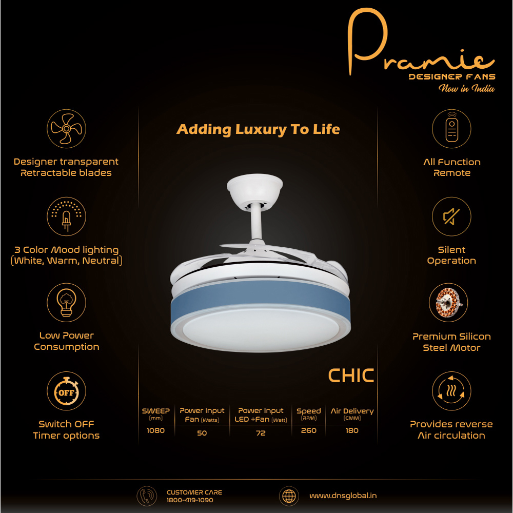 The unique and eye catchy design of the chic makes it an instant hit . A beautiful ceiling fan with a LED light in the centre, it is a perfect additon to your modern living room.