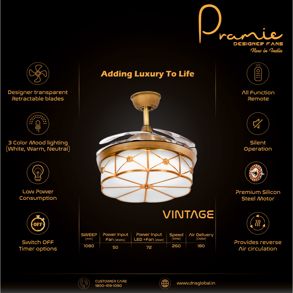 A luxury ceiling fan that brings elegance and beauty to your home. The Vintage is a decorative & effective fan with classic looks & it is perfect for fusion or period décor.