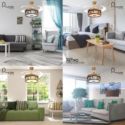 ANTIQUE BLACK FINISH METAL BODY, TRANSPARENT BLADES REMOTE