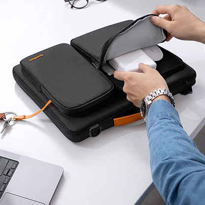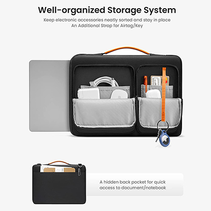 CornerArmor Technology: The laptop bag features two rubber CornerArmors at the bottom corners, which can protect your device from unexpected drops and bumps and keep your device surviving the crash, just like the car airbag